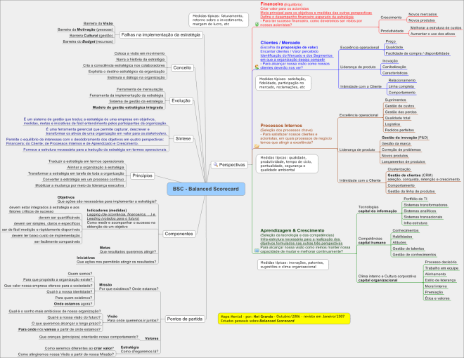 E agora é só praticar. Mais uma imagem do exemplo de Mapa Mental sobre a ferramenta de estratégia de negócios BSC (Balanced Scorecard) – clique na imagem para ampliar: