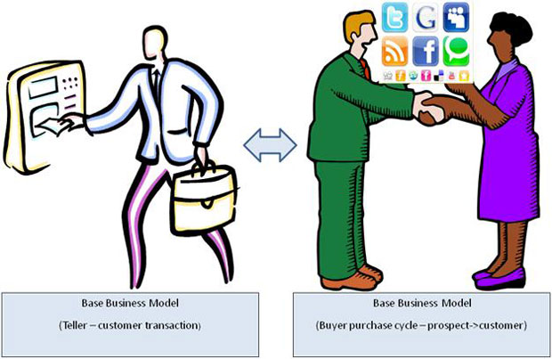 Assim, para o uso sustentável dos meios de comunicação social, tendo uma relação lógica estabelecida entre as avenidas (mídia social), as aplicações (wikis, RSS feeds, blogs, micro-blogs e outros) e o modelo de negócio (fases de decisão de compra), um bom trabalho tem que ser desenvolvido. Uma abordagem pode ser alavancar as aplicações de uma forma que complemente as capacidades de tratamento do cliente bancário.