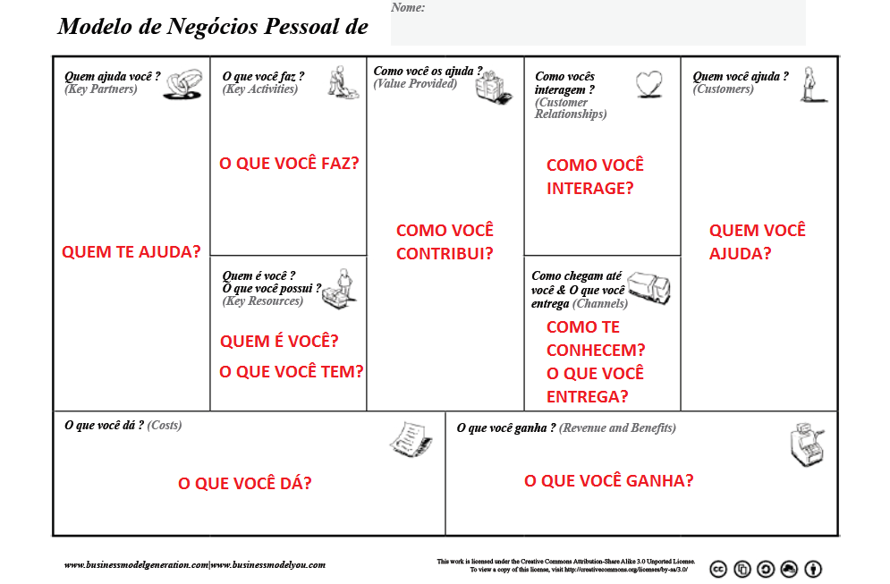 O quadro (canvas) Modelo de Negócios Pessoal (Business Model You) e os blocos de contrução
