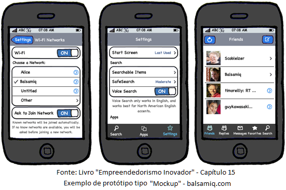 Observação: Os termos “mock-ups”, “protótipos de baixa fidelidade”, ou “protótipos de papel” são geralmente usados como sinônimos.