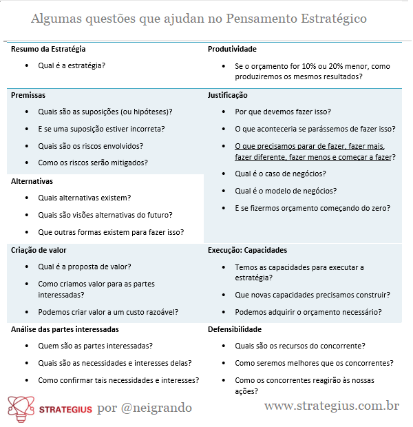 Enquanto o “pensamento crítico” enfatiza a reflexão sobre o concreto o “pensamento estratégico” chama a atenção para a reflexão sobre o abstrato.