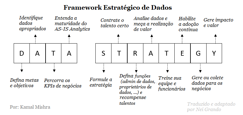 O mesmo ocorre quando se pensa sobre uma estratégia de dados, é preciso primeiramente identificar o que se pretende com os dados e depois traçar uma estratégia, com objetivos e metas bastante claros do que fazer com eles. Porém, o que geralmente existe nas organizações, é uma lacuna entre os dados coletados e o entendimento deles.