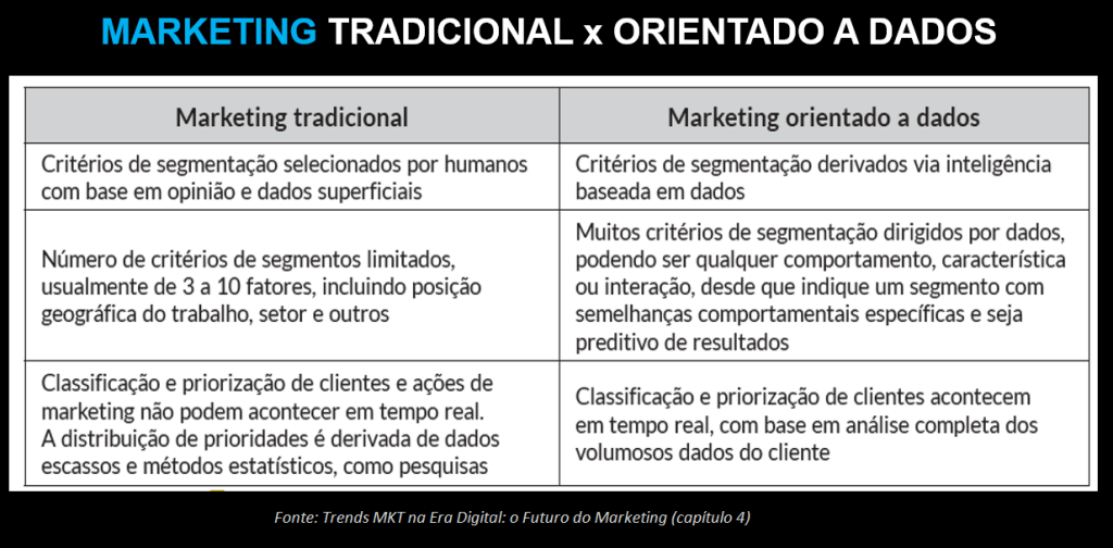 Nas empresas tradicionais os poucos critérios de segmentação usados, geralmente demográficos, são selecionados pelos gestores com base em opinião e dados superficiais.