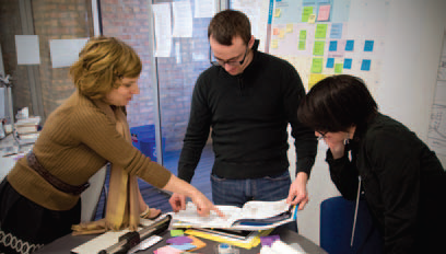 Ter um espaço dedicado ao projeto permite que a equipe se mantenha inspirada pelo contato visual constante com os materiais coletados, imersa nas notas pregadas na parede (Post-its) e capaz de acompanhar o andamento do projeto. Se possível encontre um espaço exclusivo para que a sua equipe de projeto se concentre no desafio.