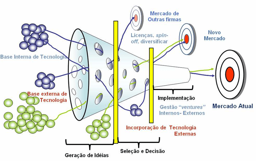 Notavelmente a partir da década de 2000, o conceito de Inovação Aberta, trouxe a ideia de que a inovação poderia ser concebida por meio de um processo de fronteira fluida, no qual uma única empresa não precisaria possuir ou controlar todos os recursos para conduzir uma oportunidade de inovação (water-fall) “da ideia ao lançamento” mas, em vez disso, a inovação tecnológica deve vir do esforço de diversos parceiros [de forma mais iterativa nos processos e interativa nas relações] – como por exemplo, universidades, startups, clientes, outras empresas – que compartilham recursos, riscos e recompensas ao longo da jornada.