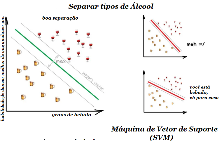 A ideia por trás do SVM é simples – ele tenta desenhar duas linhas entre seus pontos de dados com a maior margem entre eles. Veja a imagem abaixo: