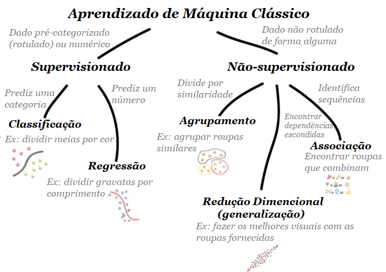 O aprendizado de máquina clássico é frequentemente dividido em duas categorias – Aprendizado Supervisionado e Não Supervisionado.