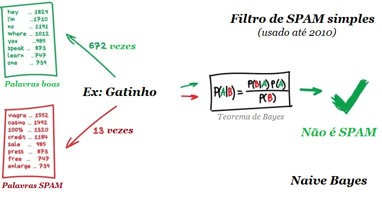 Naive Bayes entrou para a história como o mais elegante e o primeiro algoritmo realmente útil para essa tarefa. Mas agora outros algoritmos são usados para filtragem de spam.