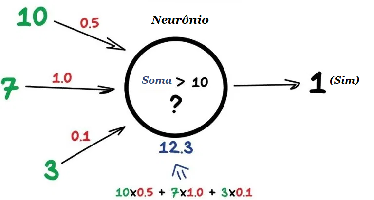 Aqui está um exemplo de um neurônio simples, mas útil na vida real: some todos os números das entradas e se essa soma for maior que N – dê “1” como resultado. Caso contrário – “zero”.