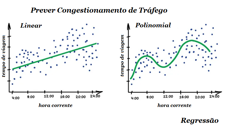 Algoritmos populares: Regressão Linear e Regressão Polinomial.
